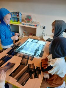 8.03.24 Koolieelikud kasutavad valguslaua võimalusi.